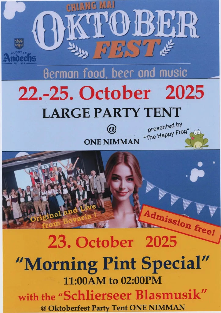 Der Vortrag findet nun im Restaurant „The Happy Frog“ im One Nimman statt, Beginn 16:00 Uhr.