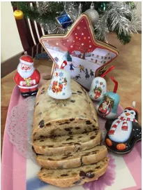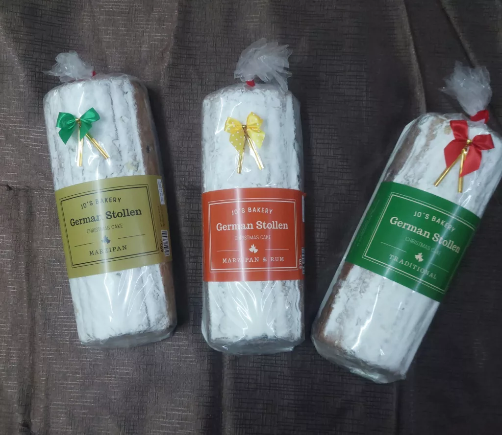 Die Stollen werden nach original deutschem Rezept, nur mit den besten Zutaten zubereitet ( Butter, Orangeat, Mandeln und Rosinen.